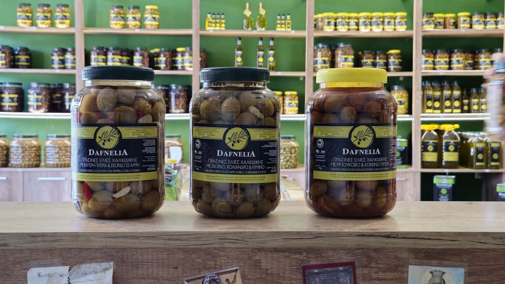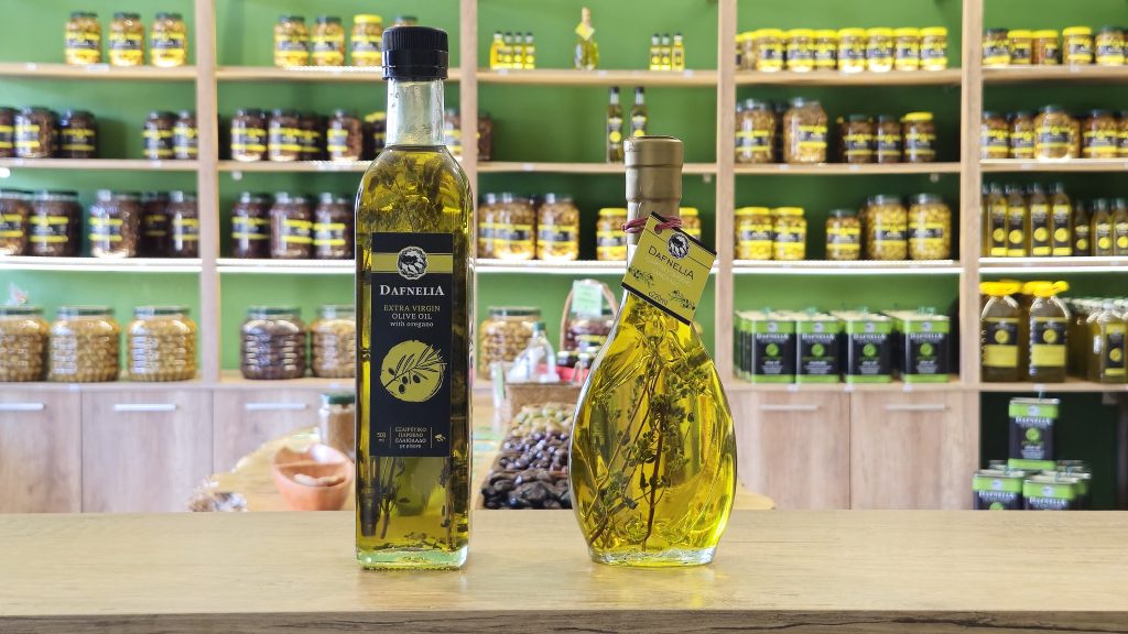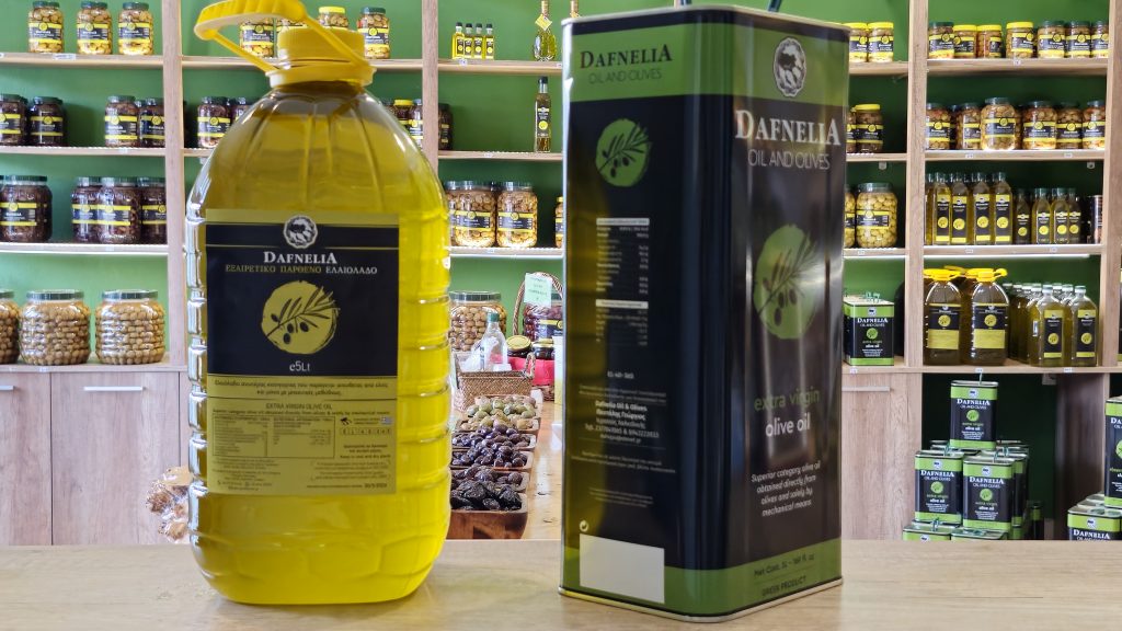 The olive oil "Dafnelia" is produced in traditional olives groves in the mountains of Chalkidiki.